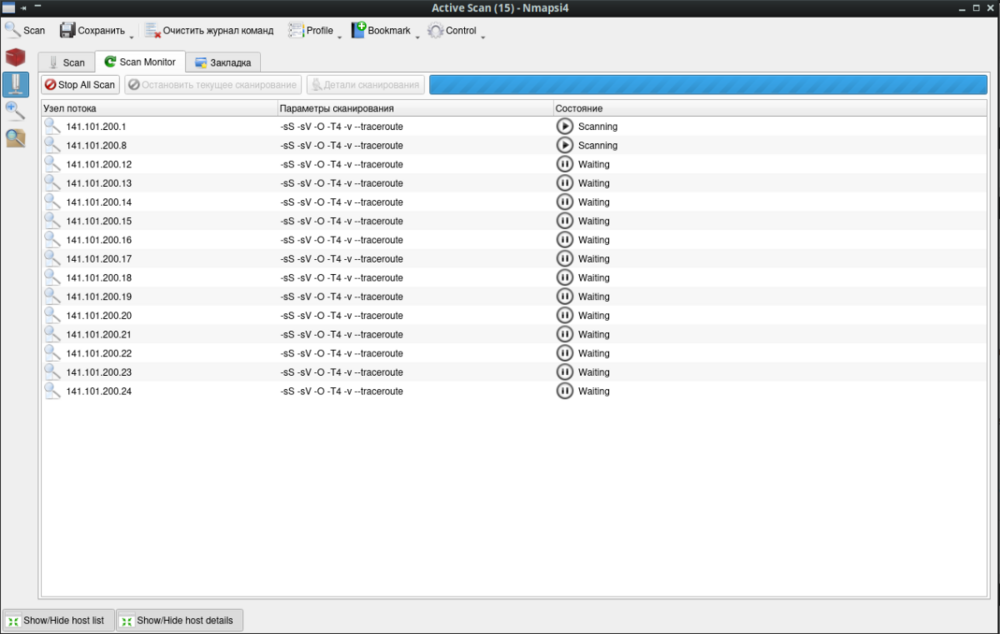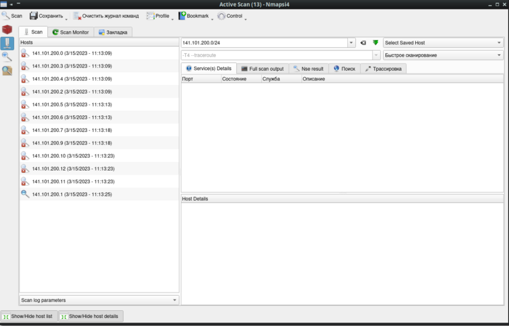 Ну не Debian 11 а BunsenLabs Beryllium Ну че то вот лениво в консольке nmap-ить, думаю как обычно - поставлю zenmap да и все. Авот##й - нету больше в репах zenmap для deb11 Из вариантов с оффсайта - через alien конвертнуть rpm и установить. Не проканало, мешанина версий python ( 2 и 3 ) приводит к множеству ошибок. Как оказалось есть гуёвый вариант не хуже - nmapsi4 Пользуйтесь... ЗЫ. диапазн сканирования записывается не как в zenmap - тут х.х.х.х/254 после слэш идет не сеть а количество сканируемых хостов от числа последнего в адресе