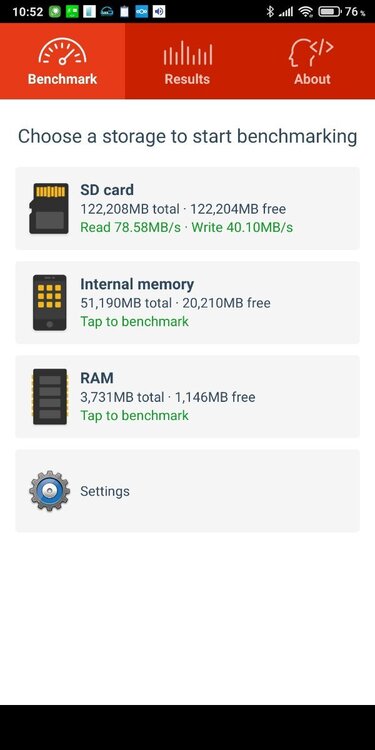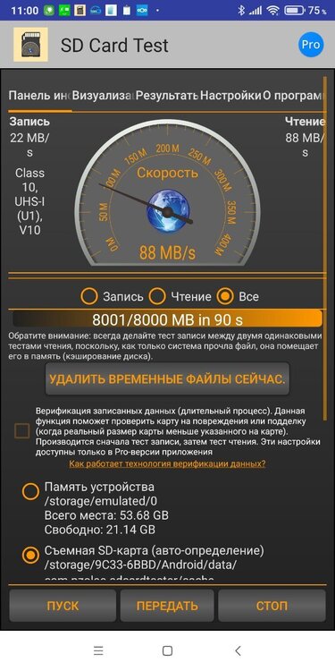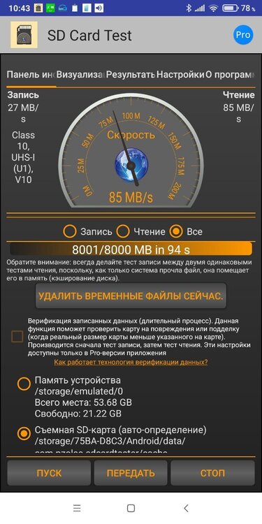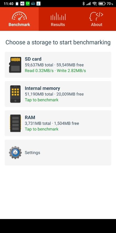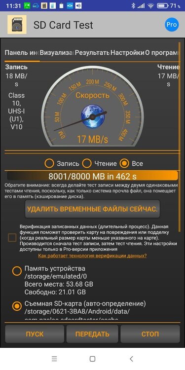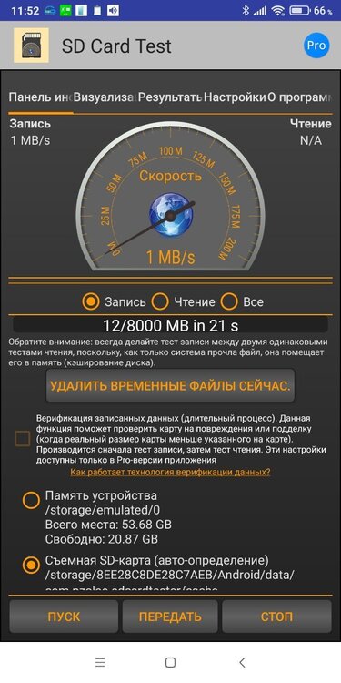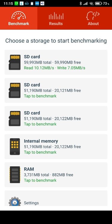 Тест скорости трех MicroSD карточек на телефоне Xiaomi Mi Max 3 Использовал A1 SD Bench и SD Card test - все из маркета особых настроек не делал - все по дефолту, тесты для сравнения карточек Добрался снова до установки линуха на EzPad mini - все карточки в винде через кристалмарк показывают ну совсем убогие скорости, вот попробовал протестить на телефоне. Карточки менялись не на ходу, а через выключение телефона. Ккарточки все заказывались на оззе не на алишке - хотя сейчас никакой гарантии левого товара нет и на оззе. Kingston подозрительно дешманская и на упаковке все надписи иероглифами китайскими, паралельный импорт наверное. 1 - SanDisk Ultra 128Gb 2 - Samsung EVO plus 128Gb 3 - Kingston 64Gb 4 - выдернул из планшета еще вот такую MicroSD IMO 64GB Сlass 10 UHS-I Это сплошной глюк! Телефон зависает, тесты зависают, Скриншоты зависают, скорость записи 1-2мб, тест чтения вываливается с ошибкой. Попытка отформатировать - Aparted висит. Эпик фейл кароче а не карта цд. Висит тел дваже на перезагрузке! Формат раздела NTFS - яж из виндового планшета карточку выдернул. Похоже в ведроиде не приживается. Предварительно: Sandisk +-= Samsung неплохо Kingston - сойдет Imo - говнище
