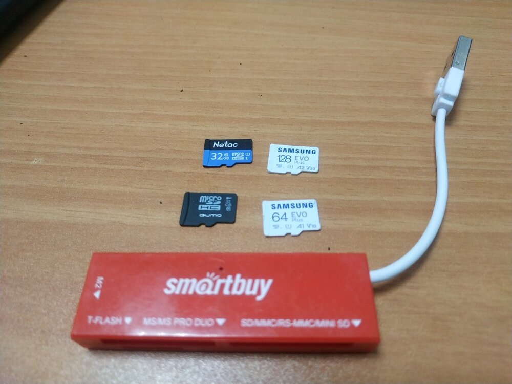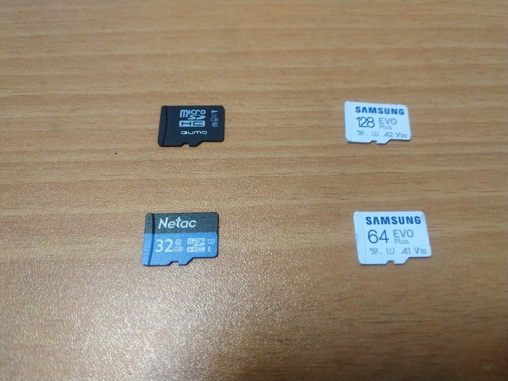 Тест MicroSD часть вторая Простенький Кардридер Smartbuy Карты на тест: 1 - Qumo SD HC C10 - 32Gb 2 - Netac SD HC C10 U1 - 32Gb 3 - Samsung EVO plus SD XC U1 A1 V10 - 64Gb 4 - Samsung EVO plus U3 A2 V30 - 128Gb Все карточки отформатированы в ext4 Измерялось одинаково для всех 1 - Qumo 2 - Netac 3 -Evo 64 4 - Evo 128 Что в итоге: Qumo - глюк сплошной однозначно, только под mp3 Netac - ну для своего класса и стоимости ниче так, в тел под фотки пойдет и если 4к не писать. Evo 64 - зачёт ваще. Evo 128 - Самая путёвая карта из всех представленных. Ваще достойно себя показала.